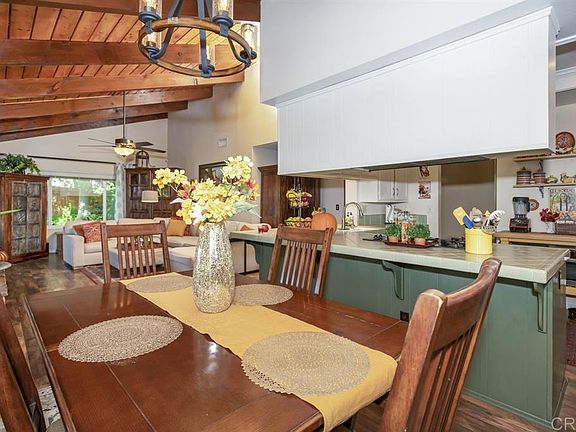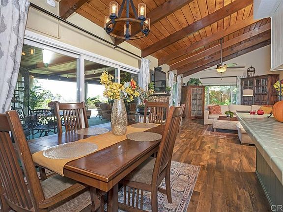 BOM-No fault of property. 1 Sty home in gorgeous Granite Hills area of El Cajon. 3 Br. home can easily be 4 Br.. Double door entry with tile. 3 car gar. w/roll up doors, Views of Mt. Helix mountains and hills. 1/2 acre w/ room for tennis court or pool. Vaulted wood beamed ceilings add character in Huge Familyroom. Home has dual pane windows, Beautiful covered patio, Cent. Air, Newer Furnace, New paint, new hardwood floors and high baseboards. No Popcorn ceilings, security system, AND on a cul de sac.