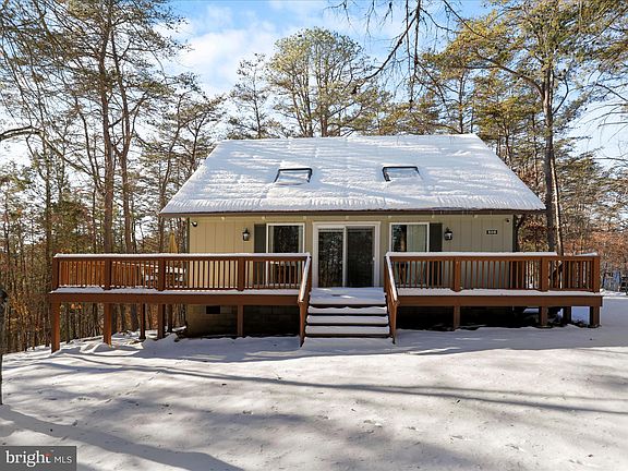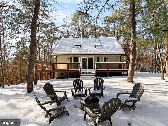 Nestled in the heart of the sought-after Bryce Resort, this stunning home combines rustic charm with modern convenience. The main level features a vaulted wood ceiling with exposed beams, creating a warm and inviting atmosphere in the spacious great room, complete with a stone-front gas fireplace and a classic wood mantle. Hardwood floors flow through the main living areas, while the kitchen boasts a large island, stainless steel appliances, and an open layout perfect for entertaining. One cozy carpeted bedroom and a full bath are located on the main level, with a convenient laundry area for easy living. Upstairs, two bedrooms and a bath are complemented by an open overlook to the great room below, enhancing the home's sense of space and light. Step outside to enjoy the peaceful surroundings on the front and side decks, or gather around the fire pit for evening relaxation. With access to Bryce Resort's amenities—skiing, golfing, lake activities, and more—this home offers the perfect blend of adventure and tranquility. Whether you're seeking a vacation retreat or a full-time residence, this property is ready to welcome you home!