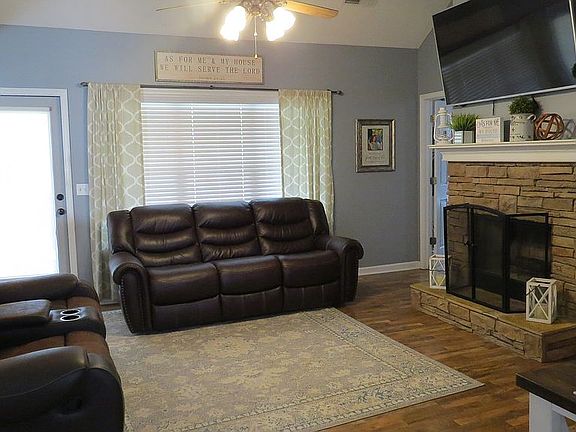 This 3 bedroom, 2 bath w/ bonus room home in Orchard Hill sits back off the road with private fenced in back yard, beautiful landscaping, and stone front exterior. Open floor plan with vaulted ceilings and granite countertops throughout. Roof, gutters, HVAC, and flooring all updated within the last 4 years. Storage shed and playground included! MUST SEE beautiful home in a wonderful school district. Call and book a private showing with Alison at (770) 468-5614