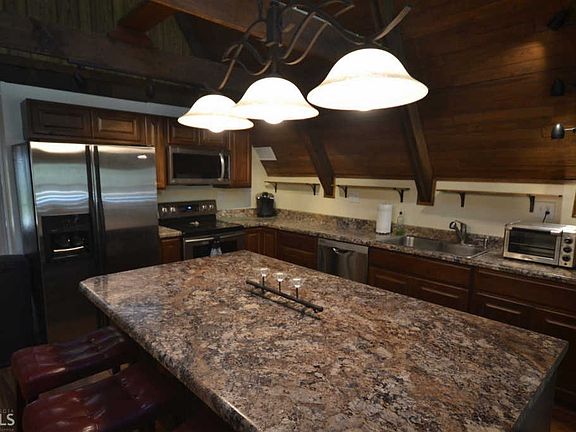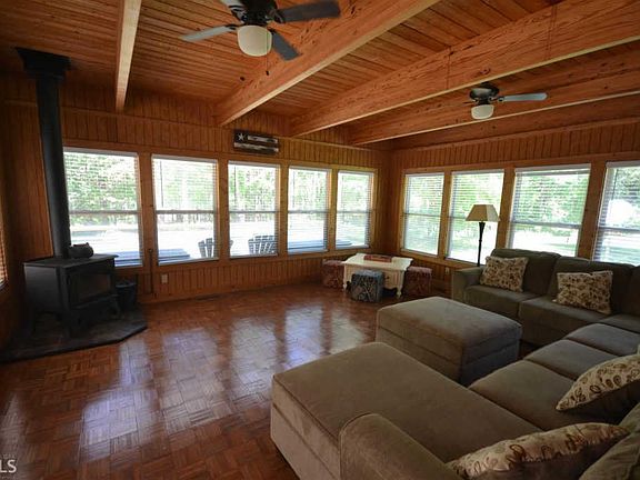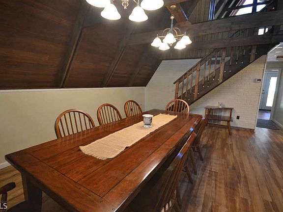 This great Lake Hartwell home is just minutes off I-85, Exit 173. It looks small from the front, but there is a huge great room built on to the lake side of the house. The great room opens onto a large deck for fantastic outdoor living. The great room is also open to the kitchen and dining area, and there are two bedrooms and a full bath on this level. Upstairs there is another bedroom, bath and loft area with a lake view. Outside, there is a gentle walk to the single slip dock which is included in the sale. The property also includes a detached, oversized 2-car garage to store your cars and/or your lake toys.