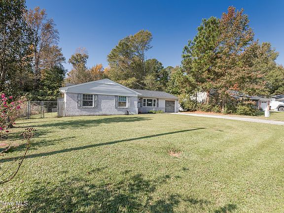 Welcome to your new home, on a quiet cul-de-sac NO HOA, and just outside of city limits, making your property taxes lower and giving you the freedom to create the yard of your dreams. With a fully fenced in yard, and the back half fenced in separately with a chicken coop and shed, it is ready for you to make your own! Inside the home you will find a bright open living area, perfect for entertaining. The kitchen features granite countertops, updated fixtures and stainless steel appliances! Down the hallway you will find 3 bedrooms allowing ample space for family or guests, and a large master bedroom with a walk in closet and en suite bathroom. This home is just minutes from shopping and a short 15-20 minute drive to Camp Lejeune. Don't miss out on the oppurtunity to own