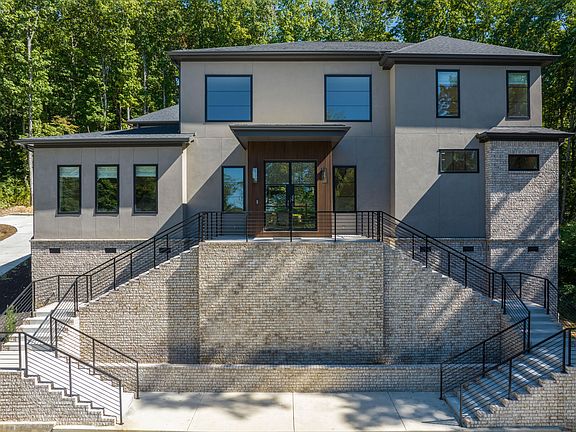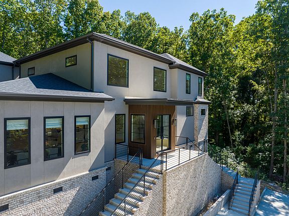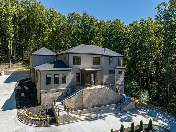 Sleek, yet comfortable, 5 bedroom, 4 full, and 2 half bath modern masterpiece situated on a 2 +/- acre partially wooded lot in the heart of Signal Mountain close to community schools, the Signal Mountain Golf & Country Club and just minutes from downtown Chattanooga. You will absolutely love the open living plan, spacious rooms, the master on the main, lofty ceilings, decorative lighting, hardwoods and tile throughout, and the wonderful natural lighting and lush views provided by the multiple Anderson windows and doors everywhere you look. As you enter the home via the impressive iron and glass doors, you will immediately take note of the 20 ' ceilings in the great room and the distinctive wood and metal staircase. There is a convenient refreshment center tucked under the stairs with a sink, icemaker and mini-fridge and is perfect for both special occasions or everyday use. The great room has a gas fireplace with a granite hearth which has down-lighting that adds to the artful atmosphere. The great room is open to the kitchen and dining room, and large glass sliding doors lead to the covered patio area, built-in grill and back yard providing a wonderful flow for indoor to outdoor dining and entertaining. The kitchen has a center island, custom cabinetry with soft-close drawers, and stainless Bosch appliances, including a gas cooktop and double wall ovens. The laundry room with pantry area and 3 car garage are just steps away. The master suite is a retreat unto itself and has a corner sitting area with another gas fireplace and glass doors to a 2nd covered patio. The master hall has 2 very nice walk-in closets with organizer systems and culminates in the luxurious master bath with separate vanities, free standing soaking tub, water closet and a large shower with rain and regular shower heads, bench seat and tile and glass surround. An office or playroom and a half bath round out this level. Head up the main staircase where you will find 2 additional bedrooms with walk-in closets and private baths and a 5th bedroom or bonus room with a half bath and a walk in closet with a 2nd set of laundry hook-ups. This room is also stubbed should a future owner like to install another refreshment center. A second rear staircase off of the kitchen leads to a private suite that also has a walk-in closet and private bath, and the landing area provides a nice space for another office, exercise or sitting area. Simply a fantastic opportunity for the discerning buyer seeking a newer home with quality finishes, a private setting and a premium location, so please call for more information and to schedule your private showing of this unique property today. Information is deemed reliable but not guaranteed. Buyer to verify any and all information they deem important.