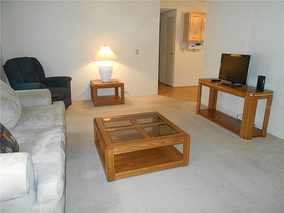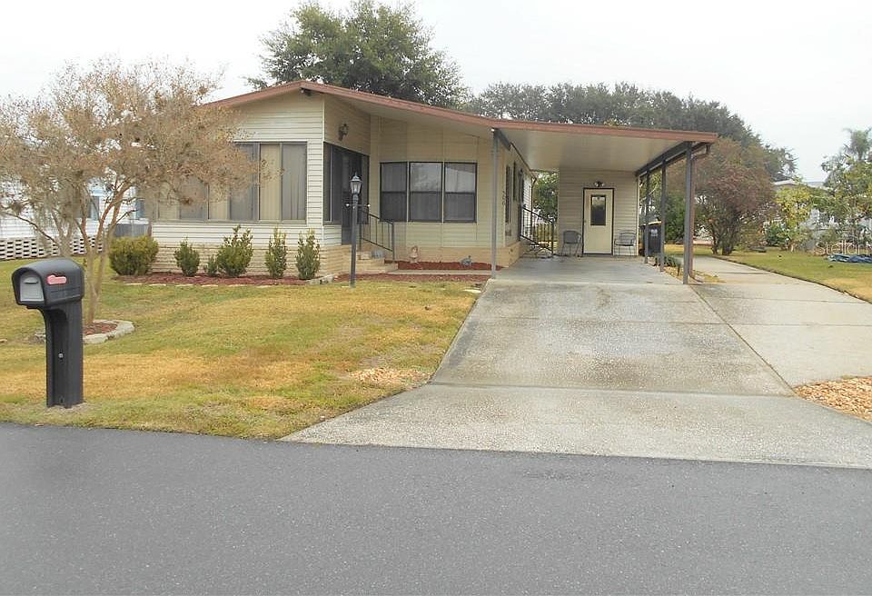 55+ Very nice two bedroom/two bath ONE OWNER furnished home located in a 55+ community close to Disney, restaurants, and many other attractions. The bright kitchen offers tons of storage AND an entrance area for either a small breakfast table or desk. The dining area opens from the kitchen and has two corner cabinets and a bay window. The large living room opens to the great Florida room where you can sit with your morning coffee or relax on a lazy afternoon. The master bedroom and bath and nice size guest bedroom offer even more storage. Separate laundry room inside, storage shed outside, and a rear patio area overlooking great back yard. The driveway has a covered carport and side parking area for a golf cart. A/C new in 2014. Polo Park offers shuffleboard, tennis, horseshoes, two heated pools, and a great clubhouse with church, Bingo, and many, many holiday celebrations. The HOA fee of $150/quarter pays for the upkeep of the park. Oh, and YOU OWN THE LAND. This is a great home in a great park.