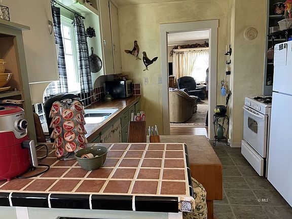 Located in beautiful Surprise Valley this home features 4 - 5 bedrooms, cozy living room with fireplace insert, original hardwood floors, and a kitchen with separate dining. Heating is forced air powered by kerosene.A full basement with a pantry, sink , and lots of space for hobbies. Covered patio, fruit trees, garden space and 2 storage shed on the property. A small greenhouse. Two car garage with upstairs storage and a separate carport. Home is located on a corner lot, walk to town and schools. There is a park nearby.