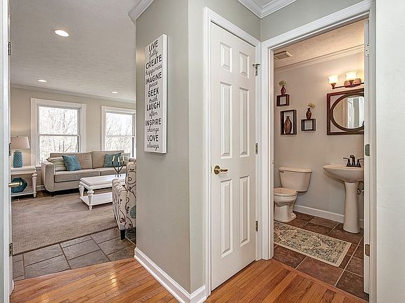 Gracious interiors, beautiful surroundings backing up to the woods. Light filled rooms in calming hues. Endless improvements including new roof, siding, HVAC, water heater, front porch, 100% of windows(double hung), fresh paint & carpets. 2 story foyer flanked by classic dining room & convenient den. Refinished floors in all bedrooms and bathrooms. Kitchen complete w/granite counters, stainless appliances, island & heated floor. Kitchen opens to family room featuring fireplace. Master suite entices with huge master bath, walk in shower and large soaking bathtub. 3 additional bedrooms & hall bath complete 2nd flr. Walk-out lower level offers game room, workout/playroom & half bath. Paver patio with large wraparound sitting wall. Lush natural landscaping & private wooded views. Convenient locale. Ask for List of Improvements!