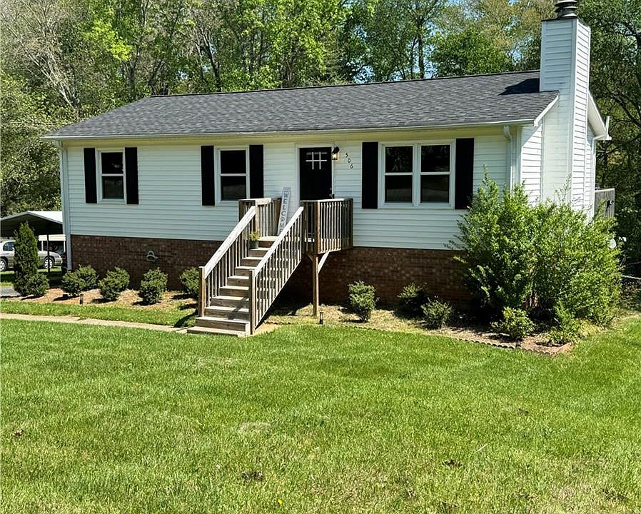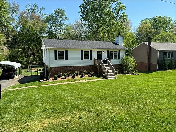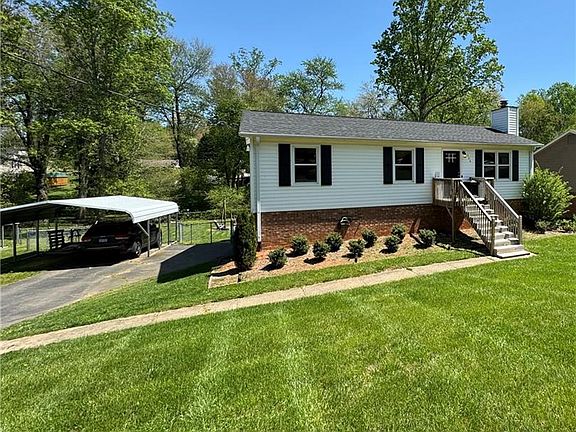 Adorable 3 bedroom on just under one half of an acre located in King NC! Beautiful back deck, inviting fenced in back yard with firepit and outdoor lighting, perfect for entertaining day and night. Just in time for summer! You will love the spacious bedrooms, fireplace in the living room and large partially finished basement with laundry room. Home was updated in 2022. New SST Appliances, new flooring throughout, fresh paint, new light fixtures, and new kitchen cabinets with granite. New granite vanities and tile floors in the bathrooms. Carport. One car gargage in the walk out basement with lots of storage. All of this close to shopping, restaurants, doctors, library, parks, Hanging Rock, Pilot Mountain, Mount Airy, Winston Salem, Kernersville and so much more!!
