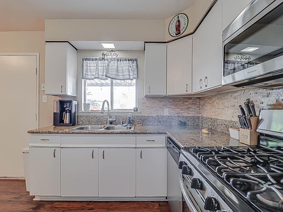 Priced to sell and won't last long! This 3 bedroom, 2 bathroom home is conveniently located near parks and schools. Perfect for a first time home buyer or a family downsizing. The kitchen offers granite countertops and includes a beautiful mosaic offset backsplash that compliments the wood like vinyl flooring. Outside has a covered patio with a very spacious backyard and a huge lawn for family activities. Schedule your showing today!