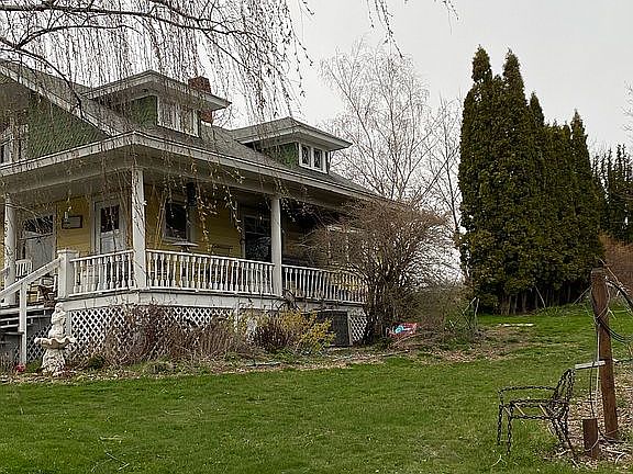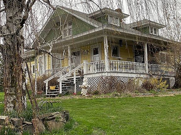 Move to the top of the hill! Distinct 1900's home on almost 1/2 acre! Formal living and dining, 2 main floor bedrooms, 2 upstairs. Classic fish-scales accent the curved gable ends. Covered porch wraps around for full outdoor enjoyment. Updated kitchen, bath and laundry for more modern efficiency. Original wood floors have been refinished, vaulted ceilings, formal dining and kitchen eating space. Good storage space, great views all around. Great little country set up!