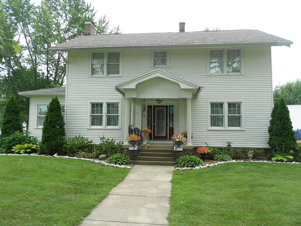 506 W Main FarmersburgStately 2-story home on 2 corner lots in Farmersburg. This 3 BR, 2.5 BA home has beautiful hardwood floors and crown molding. Updated eat-in kitchen leads to a formal dining room. MBR has a large updated bath with ceramic tile. There is a full unfinished basement with laundry area. The 2-car garage also has a 22 x 25 storage area with loft. The sunroom on the east side of the home is currently being used as a be beauty salon. Don t miss this elegant home. $149,900