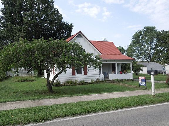 Located in Downtown Burgin is this charming ranch with covered front porch. Nice yard, big shade tree, detached garage/shop and a garden shed. Blacktop drive with turn around. Features: Living room, dining room, kitchen with appliances. Two bedrooms and one bath. Tall ceilings, hardwood flooring and vinyl. Some new interior paint. Replacement windows and a metal roof.