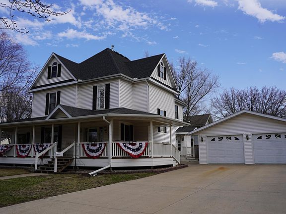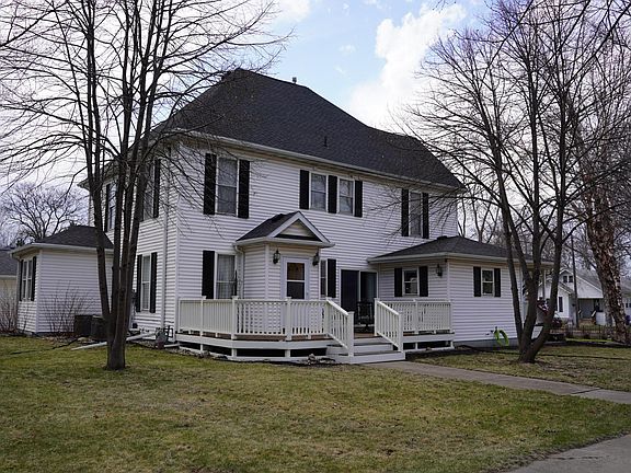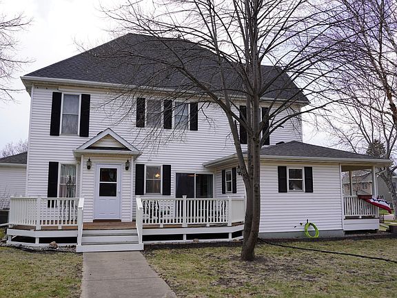 This stunning 5-bedroom, 3-bathroom home sits proudly on a corner lot along Main Street, wrapped in elegant white siding and full of timeless charm. The large front porch and side deck offer inviting outdoor spaces to relax or entertain.
