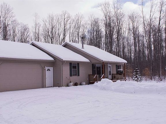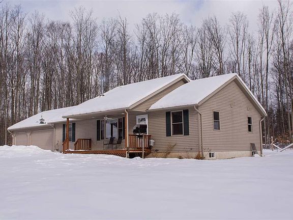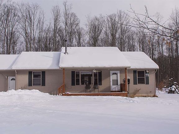 Tranquil, peaceful, your own slice of God's country. Sit on your deck and enjoy the turkey and deer roaming in your backyard. 10 beautiful acres surround this 3 BR, 2 BA ranch. Nearly 1400 square feet on the main floor. Main floor utility, large living room with fireplace. Kitchen appliances remain as well as all window treatments. wood flooring. Full basement. 2 stall heated garage. Man's delight-32x45 stick built barn with wood and propane heat, surround sound, built in frig and decorative floor. Need we say more. Also 22x8 Wood shed. Check it out today!
