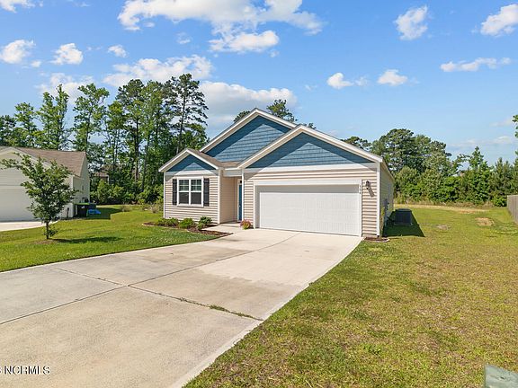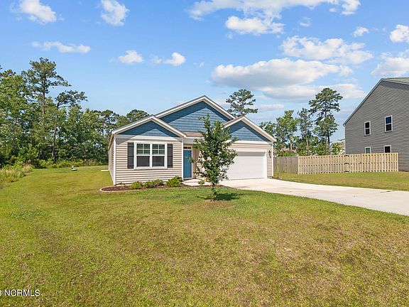 Nestled in a Cul de Sac in the very desirable subdivision of The Preserve at Morris Landing sits this 4 bedroom, 2 bath home! This immaculate home features LVP flooring throughout the Foyer into the Kitchen, Dining Area and Living Area with professionally cleaned carpeting in your bedrooms. A kitchen perfect for gathering and entertaining with a large open space boasting a large island with beautiful granite counters! The Master Suite has natural light and and the En Suite features dual vanity, separate soaking tub and shower, walk in closet and the ''Beloved'' water closet! Relax on your covered patio in your large backyard that backs to a treeline buffer! Not to mention you are steps away from the Intracoastal Waterway at Morris Landing Preserve Public Access where you can fish from the pier, launch your kayak, canoe, fishing boat or just enjoy the wildlife! Minutes to Topsail Island And Stone Bay this home is a Must See!!