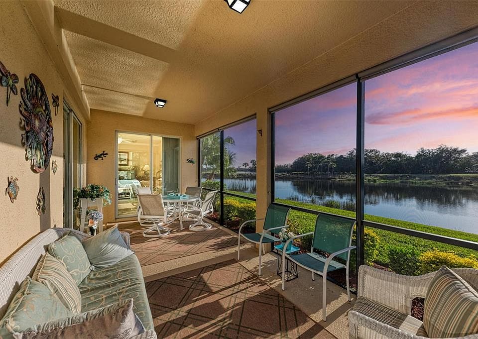 Best VIEW at a VALUE!!! Take one look at the sparkling water and golf views from this fabulous Coach Home and then turn around and look inside at the beautiful upscale coastal decor and you’ll be ready to make it your new Florida getaway! This first floor Coach Home comes with a GOLF DEEDED membership to River Strand Golf & Country Club and is being offered FURNISHED with over $35K of high-end furnishings! This spacious & OPEN floor plan is perfect for everyday living and entertaining. Your guests will love the split bedroom flow of the unit which gives them their own space and privacy, or maybe you work from home? The secondary bedrooms make a perfect office or craft room, the opportunities are endless. The original owners have lovingly maintained this unit and added many updates making it a smart investment as well as beautiful. Updates include: HVAC added in 2018 and more recently they have added newer refrigerators, upgraded carpet & padding in all bedrooms, dishwasher, hot water heater, kitchen disposal & faucet, both toilets replaced with taller comfort level, mirrors in all bedrooms, privacy sunscreens on the lanai & new screens with upgraded 20/20 mesh. Bottom line-this unit is UPDATED and ready for you to enjoy…just pack your golf clubs, racquet & bathing suit and get ready for all that River Strand has to offer! River Strand Golf & Country Club is a friendly community with a 27-hole Arthur Hills designed golf course-recently renovated by Andrew Green, 9 Har-Tru Tennis Courts, 8 Pickleball courts, 2 Resort-Style Pools, 6 Satellite Pools, Clubhouse with restaurant & social events, Community Center & 2 fitness centers in this luxury gated community with 24 hr. security & lawn maintenance. Convenient location to I-75, University Town Center, & beaches complete the package. River Strand Golf & Country Club More than a Community, It’s a Lifestyle. Bedroom Closet Type: Walk-in Closet (Primary Bedroom).