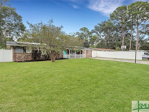 Upon entering this welcoming, 3 bedroom/2 bathroom home, you are greeted by a formal sitting/keep room featuring vaulted ceilings and natural light. The kitchen is a true delight, boasting stainless steel appliances, updated counter tops and cabinetry, and an adjoining breakfast nook that seamlessly flows into the family room. A versatile bonus room awaits, serving as an ideal space for a formal dining area, home office, or any other purpose you desire. The family room is a hub of activity, featuring double doors that open onto a delightful and inviting patio. This outdoor space is perfect for hosting gatherings and savoring the beautiful Savannah weather in the generously sized, fully fenced backyard. Adding to the allure of the outdoors, you'll find an outdoor bar and a convenient storage building.