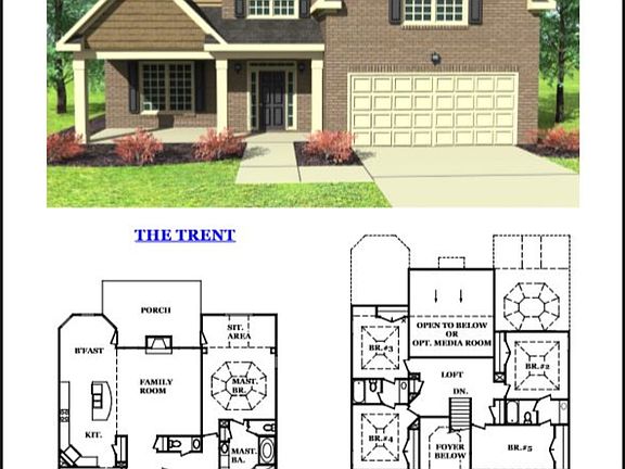 Just steps inside the 2-story foyer of this home will tell you why this is one of our most popular plans. It is bright, light, open and ever so comfortable to live in. The formal dining room is banquet size and has a coffered ceiling. The large great room boasts a brick or stone fireplace and is open to the large kitchen with walk in pantry, island, stainless appliances and large breakfast bay with access to the rear patio. Down the hall past the powder room and full sized laundry room is the Master on the main. The owner's have plenty of room to unwind with large tray bedroom plus sitting room with access to the rear patio plus a tile bath and large walk in closet. Upstairs it may actually be even better. There are 4 additional bedrooms with 2 full baths between the bedrooms on each side of the home. Plus there is a raised, open MEDIA room that makes a great room for the kids to play and have their own tv viewing area. One of the 4 bedrooms upstairs has a huge sitting area off of it also. So much home, you want believe your eyes.