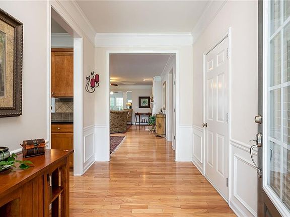 Honey Stop the Car....ONE Level Living!! This beautiful ranch home is located in the highly sought after Kingswood subdivision in South Forsyth. Location is not the only thing this home has going for it! This Superb Craftsman Style Ranch home boasts custom moldings, tons of natural light, NEW ROOF, New Paint, and New Patio! Beautiful hardwoods throughout.... NO CARPET, grand open floor plan. Large kitchen with tons of stained cherry cabinetry, large center island, stainless appliances, granite countertops, and eat-in breakfast area. Large master suite with tray ceilings, custom windows that overlook the private backyard and patio, Two secondary bedroom suites, one is currently used as a library with floor to ceiling bookshelves. Laundry room with extra storage space. Large two car garage with custom epoxy floor.Plenty of space for workbench and storage shelves. The backyard extends up the hillside and could be double terraced for a playground and firepit. Swing is in place now. Excellent schools! This home will not disappoint. Located in a Fabulous Cul De Sac!!