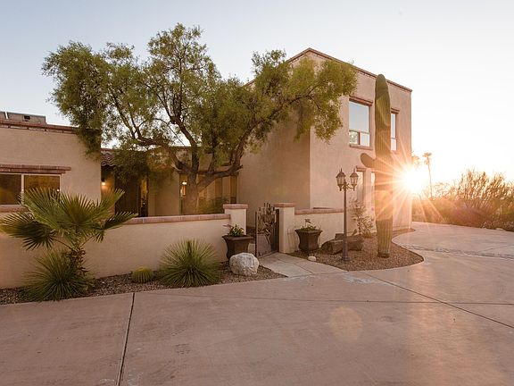 Amazing Mtn/City/Sunrise/Sunset views. Open Flr Plan. Upstairs Lg Master Suite w/2 walkin closets, dual sinks w/ separate vanities, walkin shower w/ 2 heads. Lg open kitchen w/Custom hickory cabinets &Granite tops. 2 SE bedrms could be turned into 2nd Master. Ceiling fans throughout. 18'' Ceramic tile throughout, carpet all bedrms, LG Garage 21'DeepX24'. Enjoy front courtyard w/ flagstone patio, roses, seating area &fountain while gazing @ the Catalina Mtns. Huge backyard w/game pool to enjoy water volleyball, & 2water falls. Custom wrought iron gates. 41Solar panels, owned. Most elec bills under $20, per TEP average bill $48 w/summer usage. Roof recoated in Sept2018, 5 year roofer warranty, w/ 10 yr silicon coating warr. Owner AZ Licensed Real Estate Agent