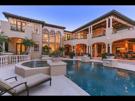 Bay front BEAUTY! Gated one acre estate with 100 ft of bay front beautiful views on one of the widest expanses of Bay water. New, magnificent 5 bedroom mediterranean masterpiece! The master area features a separate sitting area inside and an expansive terrace with breathtaking Bay and Sarasota city views for outdoor enjoyment. The master area is designed for ultimate privacy and views. There is a mini kitchen, large his and her closets plus marble his and her baths that feature a steam shower in his bath and her shower has a window wall to the Bay. The marble finishes are unique and the bathrooms very spacious. A gorgeous entry opens to the living area that capitalizes on the water views from all the primary rooms. The chef's kitchen adjoins the family room which opens to the grand terrace with multiple sitting areas plus the infinity pool. The pool deck has an inviting fireplace sitting area and fully equipped outdoor kitchen, perfect for family and entertaining. Also adjoining the kitchen is a game room/pool room and full size theater room. There is also a live in suite with a private entrance off the kitchen area- perfect for a nanny or family member. Another guest suite downstairs has magnificent Bay views and a private bay front terrace. There is also a large formal dining room plus a wine room and bar area off the kitchen. The wood appointed office has Bay views. The designer finishes are gorgeous and special treatments are throughout the estate. Deeded beach access . 4 car garage.
