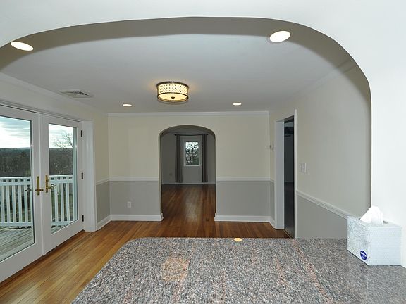This is a bright clean apartment with a large deck and a great view. There is a nice modern kitchen. The kitchen has a breakfast bar, granite countertops, stainless steel appliances, ample cabinet space and tile floors. The dining room has glass French doors that open onto the 12x 25 ft deck. The living room boasts a large picture window, which provides ample natural light. There is a great view of the large open yard surrounding area. LED ceiling fixtures provides plenty of energy efficient light throughout the home. There are hardwood floors in the living room and dining room. The bedroom has wall to wall carpet, new blinds and new ceiling fans. There is an addition room that would make an ideal office. The apartment has its own washer and dryer. Please Note: There is a Maximum of two residents. There is no smoking or vaping allowed. There are no pets allowed. One parking spot is allotted to apartment, additional guest spaces shared with other units. Owner pays for the water. Tenant pays for the gas and electric. The lease is for the term of one year. The lease will renew on a month to month basis after the first year. The first month's rent, last month's rent and a security deposit are required at the time of the signing of the lease. There is no smoking or vaping allowed in the building. There are no pets allowed. There is one parking space assigned to the apartment. There are guest parking spaces but they are shared with other units.