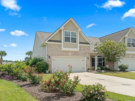 Welcome to your dream townhome! This beautiful 3-bedroom, 3-bathroom home is truly special. When you arrive, you'll notice the well manicured lawn, lovely landscaping, and a welcoming front porch. Inside, the open and bright space with hardwood floors in the foyer, dining room, and main living area will catch your eye. To the right, there is a comfortable guest room and a bathroom nearby for easy access and privacy. The formal dining room leads into a stunning kitchen with stainless steel appliances, breakfast bar, walk-in pantry, and an abundance of cabinets for storage. The living area has high ceilings, creating an open space, perfect for entertaining. The main bedroom is a peaceful retreat with a vaulted ceiling, a walk-in closet. The ensuite bathroom featuring a garden tub, step-in shower, double sink vanity, and linen closet. The patio is perfect for grilling, entertaining or simply relaxing as you soak up views of the lake. Upstairs, there is a spacious third bedroom with its own private bathroom, making it a cozy spot for guests. There is an attached 2-car garage with epoxy finished floors and laundry room. The Tuscany community offers a resort lifestyle year-round. Tuscany residents have access to the resort-style amenity center which features a two-story clubhouse with two outdoor swimming pools, lazy river, 2,000 square foot state-of-the-art fitness center, game room, 24-seat movie theater, lighted tennis courts, nature trails for hiking, 40 acres of lakes and 60 acres of conservation. This home is conveniently located and is easily accessible to US-501, area beaches, Myrtle Beach airport, shopping, dining, and all area attractions. Measurements are not guaranteed and is the buyer's responsibility to verify. This townhome blends style, comfort, and convenience in a picturesque setting, do not miss out on this opportunity!