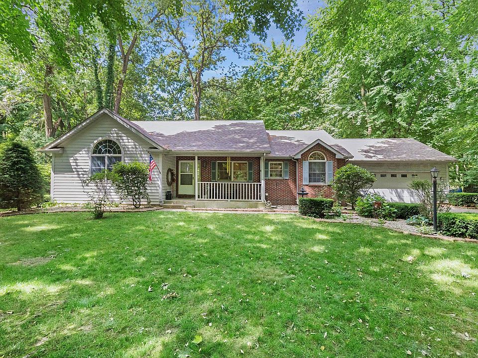Come today to see this pristine, move-in-ready, 3 bedroom, 2 full bath ranch in highly sought after Park Forest subdivision. Enter from the covered front porch to an open floor plan. Get warm and cozy by the fireplace in the living room, move through to the dining area and out the french doors to the newly fully enclosed sunroom where you can take in a view of the trees while staying in the airconditioned house! Feed the whole crew easily with a double wall oven and separate gas range in your eat-in kitchen which boasts ample storage. Revel in the convenience of having your main bedroom en-suite, the remaining bedrooms and the laundry room all on the main floor! Head down to host game night in the finished basement with a wet bar and tuck a few items away (or create a play area) in the hidden room behind the built-in bookcase. Enjoy the cool shade of a wooded yard during the summer heat. Sit out on your open deck with built-in bench in the back yard to share a meal. All this and rest easy knowing your newer furnace and brand new roof (2022) will last for many years to come!