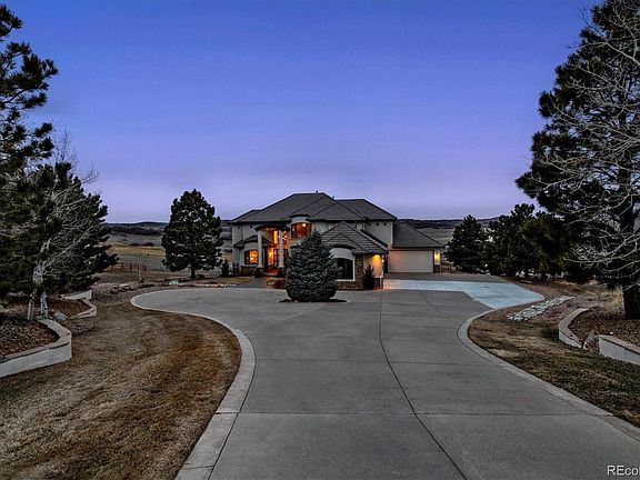 ***Updated modern style masterpiece impeccably maintained with pride of ownership throughout and constructed by the quality custom home builder Pinnacle Peak***Backing to the 16th hole of the renowned Pradera Golf Club with inspiring views of both the entire par 5 hole and also the tree covered ridges on beyond***Over $250,000 in recent upgrades and remodeling***Bright, light and sunny throughout with the modern styling so much in demand with today's market***Updated kitchen, light fixtures, stunning custom spiral staircase unlike any other, wood flooring, wine cellar, window coverings, landscaping, baths, basement kitchen and much more***The views are to die for and will be the center of attention from every room on the rear of this rare home***Outstanding morning/evening views from the elevated deck and walkout lower level patio***1.965 acres of quiet, peaceful privacy for seclusion and enjoyment***Oversized, heated 6-car garage plus storage for golf carts, lawn equipment, etc.***Drive your private golf cart three blocks to renowned Pradera Golf Club for a round, dinner, exercise, etc.***Too many upgrades to list but must see to appreciate***Extremely flexible floorplan with four bedrooms on upper level - each with an en suite bathroom - and an additional 5th bedroom on the walkout lower level***This is a home which must be seen to appreciate the modern styling, impeccable move-in condition, open and light floorplan, updates and upgrades, rare location and views beyond compare to be enjoyed from now on***Quick access to DIA, DTC, shopping in Parker or Castle Rock, outlet malls, restaurants, two hospitals, I-25, C-470 and much more***Neutral decor***Heated UL bath floors (except bsmt.)***Perfect floorplan for in-laws, teenagers, visitors***The home of your dreams awaits your arrival so be sure to visit quickly***With this styling, views, privacy, flexible floor plan, Pradera lifestyle, convenient location, Pradera Golf Club right at hand, you will never move again