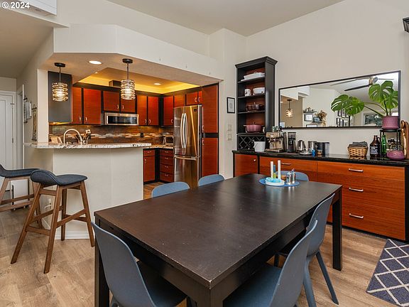 This beautifully upgraded upper second-floor condo features two bedrooms and two full bathrooms, all ready for you to move in. Enjoy the spaciousness created by vaulted ceilings that allow for plenty of natural light, enhancing the inviting atmosphere. The high-efficiency ductless HVAC system ensures year-round comfort.The living and dining areas include added built-in cabinets for convenient storage, making it easy to stay organized. The second bedroom is particularly versatile, equipped with built-ins for an office and a pull-down bed, perfect for hosting guests or serving as an additional entertaining space.Nature surrounds this fantastic condo, providing a serene backdrop while still being just a short distance from parks, river paths, and the vibrant shopping scene in downtown Lake Oswego. Don't miss your chance to own this gem.