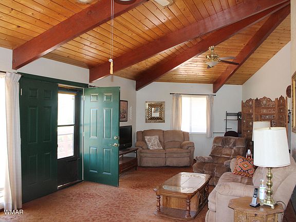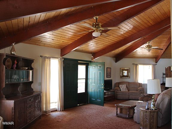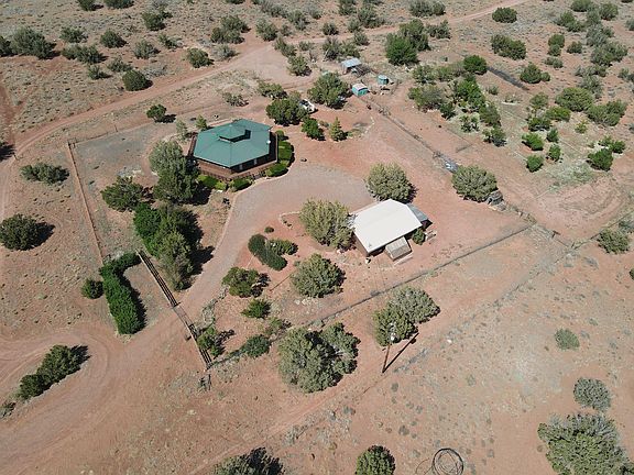 Well-maintained, move-in ready two-story, site-built home with full basement and wrap-around deck on 40 acres 10 miles east of Snowflake. The 1545 sq ft of living space includes an open concept for the kitchen, dining and living room area plus 3 bedrooms, 1 and 3/4 baths and laundry room on the main floor. The second story room has 6 windows for a 360 degree view. Vaulted wood and beam ceilings throughout the house. Dual pane windows and 2x6 construction with rigid styrofoam insulation.Three car garage with 220 electricity and windows for natural lighting. Small greenhouse attached to garage with water and electricity. Large orchard with apple, cherry, peach and apricot trees. Landscaping includes windbreaks of trees and shrubs as well as roses, lilacs, flowering trees and rock garden