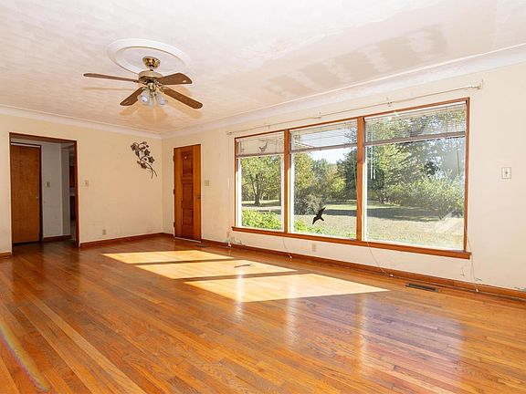 What a great location. If you're looking for peace this is the place. Ready for you to put your touches on and make it your own. Approx 1.95 acres with a pond and room to roam or add outbuildings. Spacious ranch style home that has been in the family since it was built. Large living room with original hard wood floors in great condition, eat in kitchen with quality cabinets, 3 bedrooms on the left side and one on the right that was added later. Original master bedroom has 1/2 bath. The other bedrooms share 1 full bath. There is a main floor laundry room. Full unfinished basement. So much potential. Call your favorite agent today.