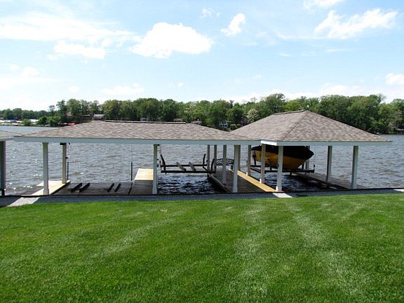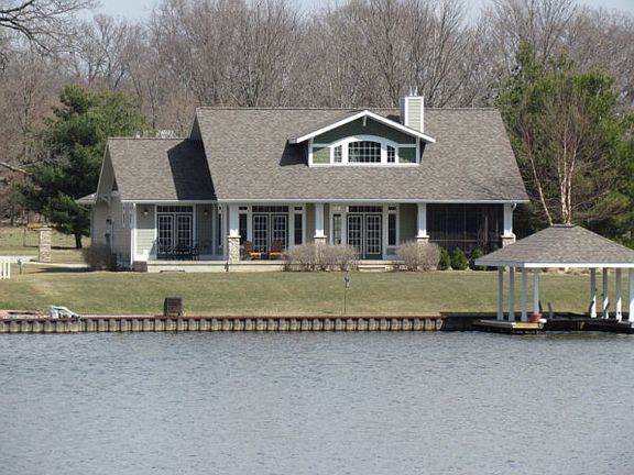 Quality Craftsman Style lake home in a premier location. Built in 2008 this home offers 4 bedrooms, 2 baths & features 9' ceilings & 20ceilings, 2 fireplaces, slate & porcelain floors, granite counter tops, tiled walk-in shower, screened in porch with a gas stove/fireplace, hardy-board siding, lakeside patio, decorative stained floor in the 2.5 car grg, exterior sound system, irrigation system, triple boat lift, steel sea wall & all setting on a beautiful lake level lot. Pole Barn available too