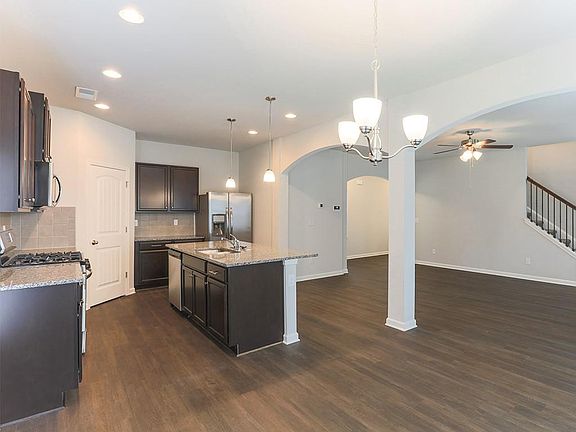 - Kitchen Features: Breakfast Bar, Cabinets Stain, Eat-in Kitchen, Pantry, View to Family Room, Kitchen Island, Solid Surface Counters