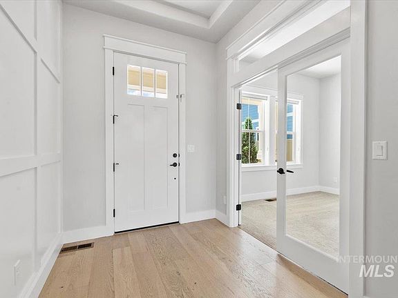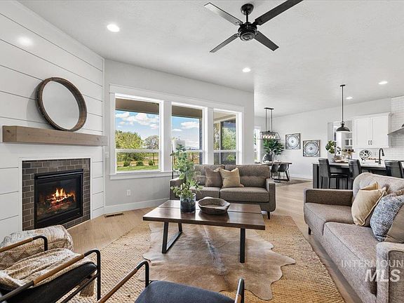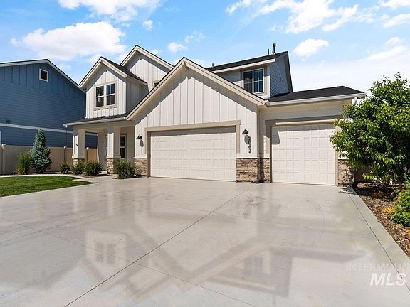 Welcome to your dream home where there is room for everyone! This almost new modern farmhouse exudes charm and sophistication, offering the perfect blend of contemporary amenities and classic design. Nestled in a serene neighborhood, the spacious floor plan includes a gourmet kitchen, a great room with a fireplace, a large bonus room, a den, and a home management center on the main floor. Tucked away upstairs are the primary bedroom suite, the laundry room, and 4 secondary bedrooms plus 2 full bathrooms. This lot has no back neighbors and views of Ten Mile Creek. Community amenities include a 2.5 acre park, clubhouse, pool with sun deck, tot-lot playground, and walking paths along Ten Mile Creek. Fridge, washer, dryer are included, and how wonderful to be only 1 mile away from the fabulous Discovery Park in S. Meridian, and have easy access to I-84 and the Boise Airport!