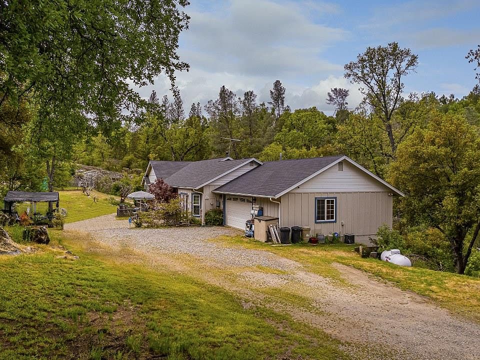 If you are searching for a little seclusion, this home will give you that feeling whether you are relaxing inside or out on your back deck taking in nature, or just working around your yard. Unbelievable peaceful setting, all while being relatively close to town, Bass Lake and Yosemite Nation Park and near the end of the road, makes the seclusion so much more delightful. Once inside, you will notice the brightness from the many windows and the open space of the living room that easily blends with the dining room. Once you pass the spacious kitchen, you will be amazed to find the large family/den area that you can just use your imagination of what you would like to do with this room, and all while having an attached bathroom and exit doors for ease of entry. Beyond the garage, there is more space that can be used as a music studio, arts and crafts room or another bedroom with a large walk-in closet for that older child or guests. There is plenty of room for storage under the house with high ceilings to place your kayaks, bikes and/or toys. Come and see for your self! Enjoy the front patio area views or the back deck overlooking the lovely property!