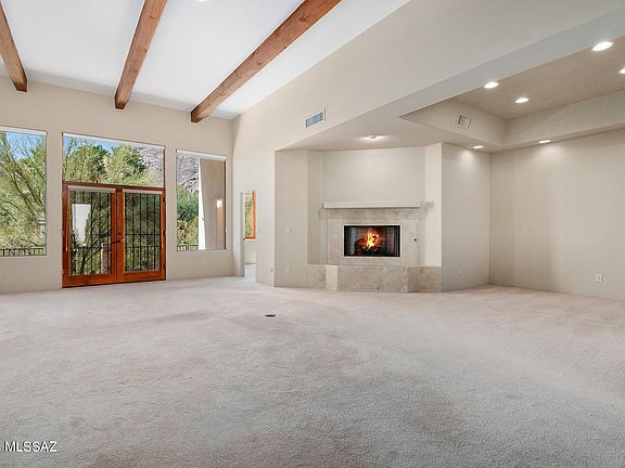 Located in the highly sought after resort community of Skyline Country Club and anchored by 24-hour guard gated security, this bright and airy residence offers 2,400 square feet with 3 bedrooms and 3 full baths. The spacious great room features lofty ceiling heights and floor to ceiling picture windows with views that stretch out over the greens of the 3rd Fairway and the Catalina Mountains beyond. A cozy fireplace adjoins the dining area, with the eat in kitchen complemented by warm wood tones creating comfortable interiors that flow together in a user-friendly open floor plan concept. The expansive kitchen features ample custom wood cabinetry, a built-in buffet and extensive countertop task space, with walls of windows that overlook the front entry courtyard. Relax in the sumptuous primary suite, which includes a large walk-in closet, shower and dual vanities. The secondary bedroom suites are spacious with generous closets and soft natural light. The North facing private rear courtyard, with a large covered patio seating area, is designed to extend square footage, blurring the distinction between indoor and outdoor spaces, and is perfect for entertaining, or simply enjoying the unobstructed Catalina Mountain views beyond.