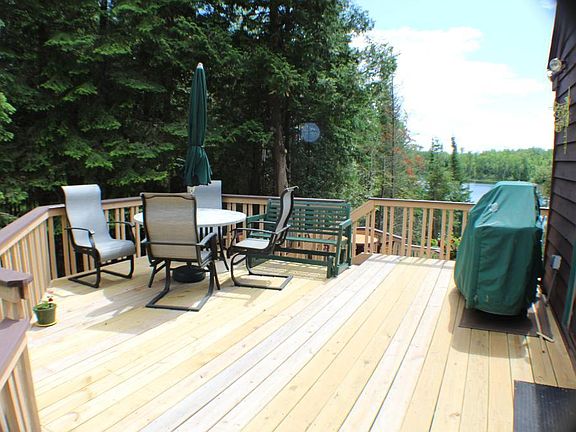 3 bedroom home on a private, 8 acre lot, west facing Turtle Lake. Home has vaulted ash ceilings with panelled walls, wood floors, open concept living. Two wood burning fireplaces, A very nice office area (15x15) Includes a two stall 24x28 detached garage storage above with a 18x24 lean to for all those extra toys. Price includes 36' aluminum dock with a 24' pontoon with a 50hp 4 stoke.