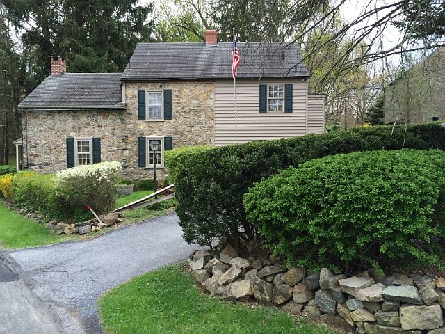 This renovated historic farmhouse and barn could be the subject of a Currier & Ives painting. Situated on a 2 acre park-like setting, the property is complete with towering pine trees, stone walls and lush gardens. The interior is warm and inviting with wood floors and deep window sills. A large open fireplace with a stone hearth and wood stove graces the dining room and kitchen gathering area. The kitchen is sleek and well-appointed with a vast granite island, custom-made cherry cabinets and stainless appliances including a double oven. The master bedroom suite has an exposed stone wall, beaded cathedral ceiling with loft and a wall of elegant windows providing views of the majestic pine trees. The master bath is complete with Jacuzzi tub and walk-in shower. The breathtaking 3-story stone barn provides for a multitude of uses. A theater room in the basement adds a fun touch. With a peaceful, rural feel, the proximity to the Center Valley Route 78/309 exchange adds to the appeal of this wonderful property. PLEASE WATCH THE VIRTUAL TOUR.