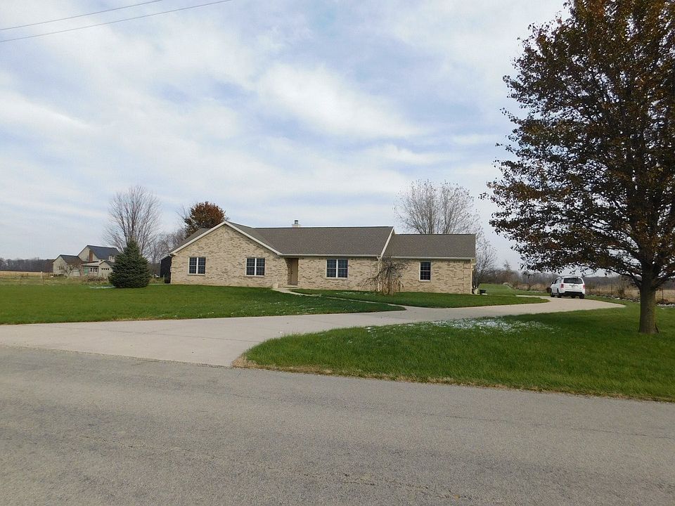 Enjoy Country living in this very modern and well built 2003 brick home. It features a central wood burning fireplace surrounded by a large Kitchen, Family, and Dining rooms with tall ceilings. Bedrooms are large and located on the corners of the home. Very clean and beautiful inside and out. Two car attached garage with lots of storage space. Large walk out deck from the dining room. Possession day of closing!