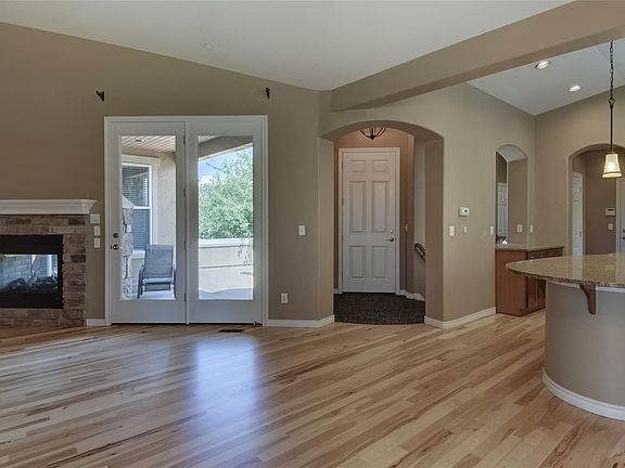 This stunning ranch style, detached patio home with 2 car attached garage is picture perfect. You will enjoy the low maintenance lifestyle in The Village at Castle Pines. The HOA takes care of the yard. Gorgeous hickory hardwood flooring is in excellent condition, newly refinished. Neutral paint and colors throughout will match any decor. Plantation shutters / blinds on every window offer a light / bright environment. Open floor plan provides easy access to front and back patios from the great room with a 2 sided fireplace. Slab granite counter tops, cherry cabinets, and gas cook top round out the kitchen. The master bedroom has a large 5 piece bath with dual vanities and an oval soaking tub. Plenty of room to get ready for the day or night with large walk-in his & hers closets. The master bedroom has access to the front patio via sliding glass door. Additional main floor bedroom has access to private back patio.