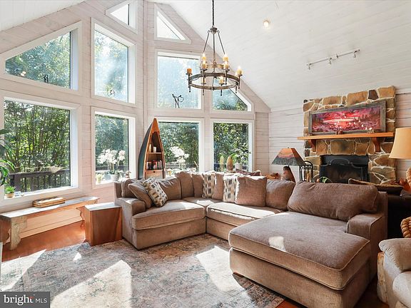 Blue Refuge- where Yellowstone meets Virginia Hunt Country. 66+ mostly wooded acres on the eastern most point of Fauquier Country hunt country seeks its next stewards. The property has trails throughout the deep hardwoods for fun or sport. There are approximately 8 cleared acres of pasture with an old dairy barn begging to be repurposed for horses or other animal husbandry. County approve building site for additional home. Picturesque and fairy-like front yard with impressive hardscaping, low maintenance landscaping, 2 car workshop/garage with half bath, wood shed, play area, fire pit, hot tub and all things to enjoy outdoor country living. The property is in an open space easement with Fauquier County and is adjacent to 100’s of acres of eased land and Arlington Outdoor Education Association Outdoor Lab. And yet only 10 mins to Rt 66 but feels a world away. The updated chalet style, 3 level log home hugged by wildlife and perched atop the country park-like setting is full time family ready or a dreamy weekend escape. There are 2 BR/1BA on the main level, bright family room with wall of windows overlooking the kingdom, kitchen, dining and rustic hardwood floors throughout. Upstairs is an impressive primary suite and bath with loft to take in the view. Currently used as a playroom, choose your own adventure with the lower level as a recreation room, gym, theater room or more-there is a full bath and entrance to attached 2 car garage. Porches and patios surround to absorb the serenity peacefully alone or share with friends while entertaining under the stars.
