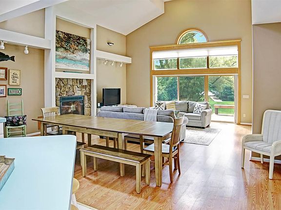 MOTIVATED SELLER! Waterfront home on Portage Lake located in the beachfront community of Onekama! Enjoy boating from your 75' of frontage on this all-sports lake with direct access to the wide open waters of Lake Michigan. This is the ultimate family lakefront retreat or the perfect rental property with 4 bedrooms & 4 baths, plus a front den with pull out sofa. All the amenities one could ask for on Portage Lake with the bonus of an Artesian creek that crosses the property and flows into the lake. Walk right out to your boat on your own private dock. Play on the sandy beach frontage, or sit back and enjoy breathtaking sunsets over the water!