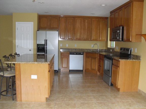 - Interior Features: Blinds, Pantry, Walk-in Closet(s), Wood Cabinets, Kitchen Isle, Counters-Solid Surface, Pull Down Stairs, Ceiling-Standard