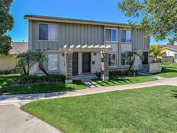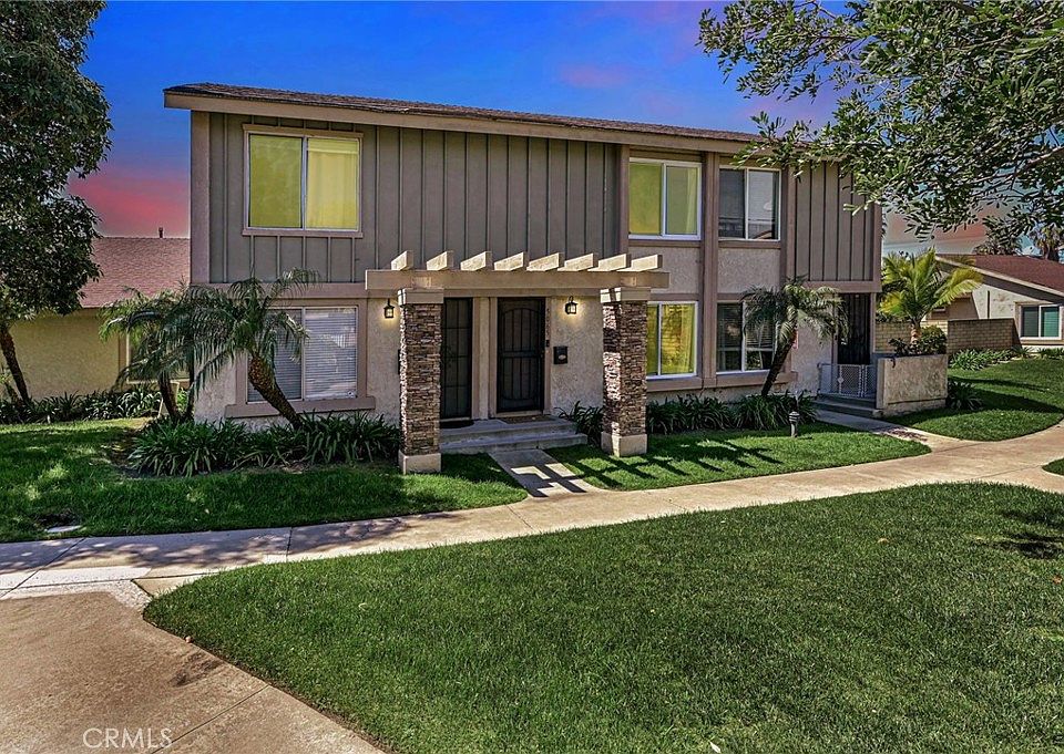 Cozy, upgraded Townhome located in the heart of La Palma, in the highly desirable La Palma Village community. A warm and comfortable home, it boasts of 2 bedrooms, 1 bathroom, 928 square feet, bright and airy! Walk in the large open floor plan with lots of natural lighting, double pane windows and engineered laminate flooring. Living room with open concept, dining room flows into the kitchen. Elegantly remodeled kitchen with granite countertops, stainless steel gas range/oven, microwave, plenty of cabinet space, a pantry and window and sliding door access to your large open back patio. Enjoy the back space with family BBQs and gatherings plus convenient laundry hookups. Direct access to the 2 carport parking spaces with extra storage through the patio. Upstairs walk into the primary suite with lots of light and space. Upgraded bathroom with tub and shower. Another generously sized bedroom with ample closet space. HOA amenities include two pools, clubhouse & greenbelts! Plus, HOA has RV parking, subject to availability & fees. Centrally located near great schools, dining, shopping, parks, entertainment & easy freeway access. Don't miss out on making this yours!!