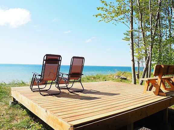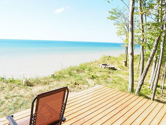 Private 250 feet of Lake Michigan frontage!! On 11 beautifully wooded acres! Located just past the Lakeland association club in an exclusive neighborhood along a private road in the desirable Grant Township. This cabin has a unique feature of 2 large garage doors that lift up and screens pull down to bring the awesome feel of the outdoors inside! Enjoy the rustic feel of a cabin in the forest with the modern twist of the many updates that make this property virtually maintenance free. Great place to spend those Up North Getaways. Schedule your tour today.