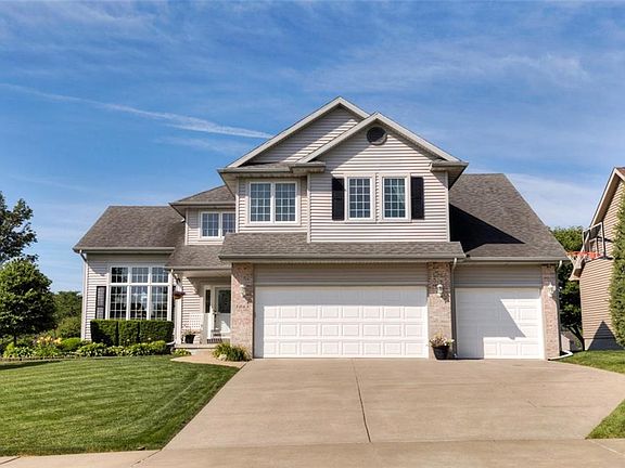 Experience luxurious living in a quiet suburban community in one of Iowa's most beautiful residential golf courses. This well cared for home proclaims pride! The owner is a retired firefighter whose maintenance & records are pristine. This rare one owner prize backs to the #8 hole with stunning views. Professionally landscaped yard. Blooming magnolia, redbuds & flowers all season long. Over 3040 finished sq. ft.! Walk into a grand 2 story entry & find the space you've been looking for! EXTRA large kitchen with stainless steel appliances breezes into an eat in area & family room with a knockout fireplace. Plenty of windows.The finished basement is a surprise, it just keeps going! So many extras! Radon mitigation, irrigation, new carpet, new furnace & AC, oversized water heater.Alarm system. Attached 3 car garage. REAL value here. Priced competitively for a quick sale! Barely a golf cart away are endless amenities. It's time to relax, you've just found home!