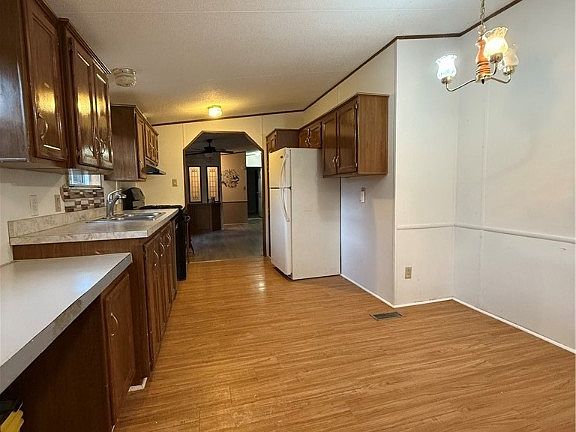 Great opportunity to own this 3-bed, 2-bath double wide mobile home with a spacious primary suite featuring a double-vanity & soaking tub. Tear-off roof in Feb. 2022 and a 2016 built shed included for extra storage. Affordable living in a well-run park. Park approval required through Cook Properties.