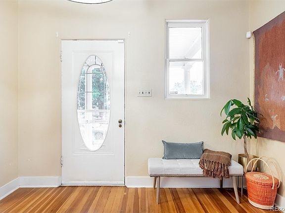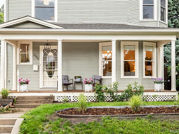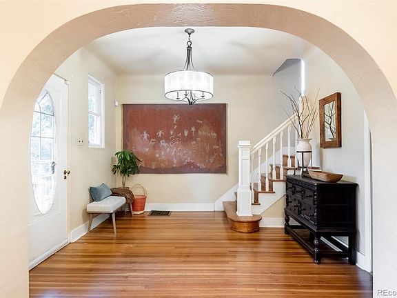 Timeless warmth surfaces throughout this beaming Berkeley home. A covered front porch crafts a charming first impression, inviting entry further inside to a gracefully flowing layout flanked by handsome hardwood flooring. Original wood trim molding and baseboards throughout inspire nostalgic flair as arched doorways create a seamless flow. Oversized bay windows draw abundant natural light into a spacious living area while a dining area sets the stage for at-home entertaining. An updated chef’s kitchen showcases a custom hood and stainless steel appliances. Glass French doors open to reveal access to a large deck overlooking a private backyard retreat. A main-level office offers a coveted home workspace. Four bright and sizable bedrooms include a primary wrapped in decorative wood paneling accents. A detached oversized one-car garage affords plentiful storage. Two additional off-street parking spaces are available plus plentiful street parking on the quiet, tree-filled street. Fully owned, grid-connected solar panels minimize utility costs. New zoning allows for ADUs as an additional income source. Residents enjoy an ideal location less than a mile to Willis Case Golf Course, Berkeley Lake Park, and bustling Tennyson Street. I-70 access is just 3 blocks away for easy access to the mountains. Enjoy all the amenities of the Highlands less than 10 minutes away without Highlands prices! This locale affords its residents enjoy quiet tree lines streets with large, private yards yet access and convenience to all of Denver's best hot spots.