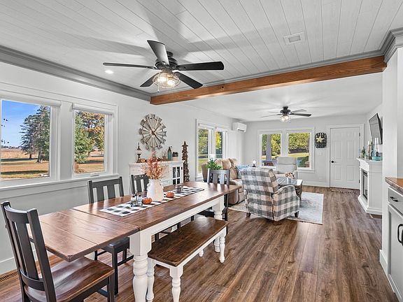 A newly remodeled 1st floor with an open concept great room that includes the Kitchen, Dining Area, Living Room, a Coffee Bar and cozy electric fireplace. There is an abundance of light from all the new casement windows and layered window blinds, along with new light fixtures and recessed lighting. The main floor also has a Master Bedroom and newly remodeled Bathroom. The 2nd floor has two large bedrooms with plenty of storage and a bonus room that would work great for a future additional bathroom. The covered front porch and rear deck provide plenty of outdoor enjoyment. The oversized, heated and well insulated garage have endless opportunities. Large yard with mature trees, totaling 1.18 acres. Utilities - Electric $120-$150 monthly. Fuel Oil - 100 gallons per year. Many updates include: NEW Well -2012, Sidewalks - 2023, Basement stairs. Porch has newer pillars, ceiling and lighting. 1st floor casement windows and custom window treatments - 2018. Roof - 2018. Bathroom remodel -2018. Newer mini-split for heating and cooling. 2021 Kitchen remodel with custom cabinetry, solid surface counters, appliances, plumbing, electrical, floor joists, living area has luxury vinyl plank flooring throughout, and Armstrong ceiling planks. Water softner owned. Propane tank rented.