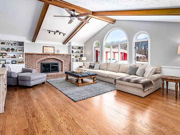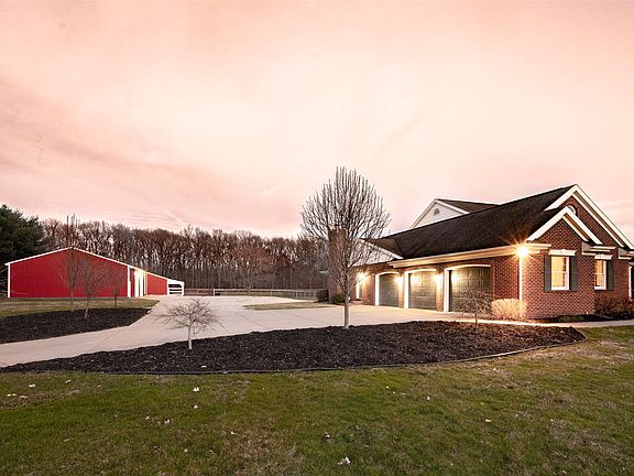 Looking for acreage or horse property close to town? This Granger home is a horse lover's dream on 5 acres in prestigious Fox Trail Farms! Located in desirable Northpoint/Penn School District! Room for animals and kids to roam! Beautiful property with a fantastic barn that houses 4 matted horse stalls (heated), separate tack room, large hay loft, room for trailer storage and a huge attached heated garage/workshop area with water and drain. Fully fenced and cross fenced pastures, frost free water available in barn, shop and each pasture. You will love what the Sellers have done with this place. Brand new updated kitchen features custom white cabinets, center island, beautiful white quartz countertops, a stunning marble backsplash, large farmhouse sink, and includes a top of the line stainless-steel appliance package. New paint and refinished hardwood flooring flow throughout the entire home. Open floorplan living shows off massive great room with vaulted/beamed ceiling, a wall of windows for abundant natural light, custom built-ins, wainscot wrap and a cozy gas log fireplace. Off the kitchen is a 3-season sun room with atrium doors that open up, inviting the outdoors in. Nice main level office with bay window, custom shelving and side door access to the front porch. Large formal dining room is perfect for entertaining. Powder room and main level laundry/mud room round out the first floor. Upstairs you will find a large master suite which features a private bathroom that has been updated with Carrera marble flooring and finishes, huge tile shower with glass door and intricate tile work, dual sinks and makeup vanity. There are also his and her walk-in closets with fantastic built-in closet systems. You will also find 2 additional nice sized bedrooms and full hall bath to complete the second level. Finished lower level basement has possible fourth bedroom (non-conforming) and a 3rd full bath that is ready for new owner to make it their own. Brand new Trex deck on back of home is perfect for grilling and enjoying the outdoor park like setting. It also has huge top of the line 8-person hot tub that is great for relaxing at the end of the day. Don't miss out on this Granger gem!!