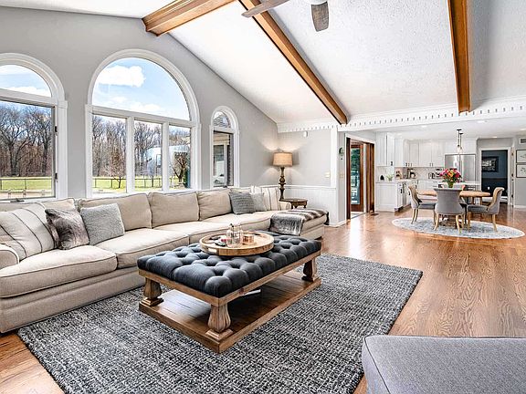 - InteriorFeatures: Kitchen Island, Great Room, Beamed Ceilings, Crown Molding, Bookcases, Entrance Foyer, Open Floorplan, 1st Bdrm En Suite, Countertops-Solid Surf, Custom Cabinetry